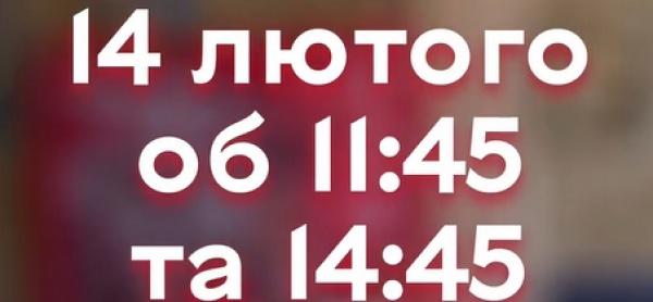 14 Лютого, 11:45 & 14:45.