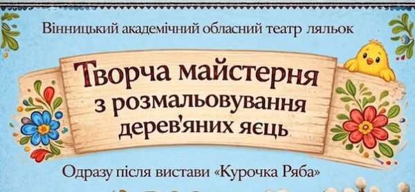 Після вистави «Курочка Ряба» на вас чекає захоплива майстерня з розмальовування дерев’яних яєць - чудова можливість проявити фантазію та створити власний маленький шедевр!